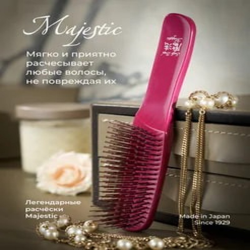 КомплектацияАнтистатическая резинка; подарочная упаковка; чехол для расчески; Расческа Majestic Scalp Brush Wild Cherry; открытка
